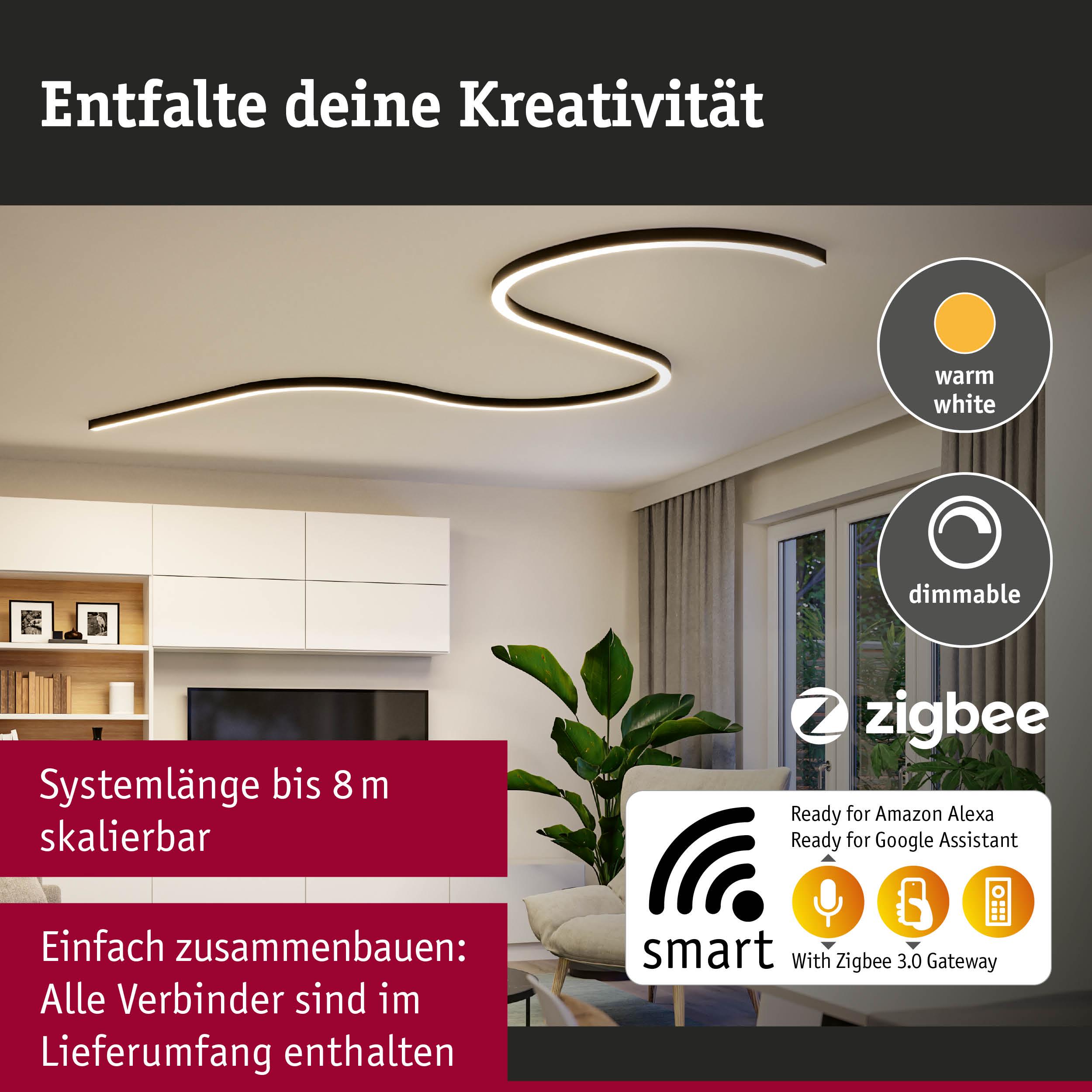 Das einzigartige Lichtkanalsystem Linion setzt neue Maßstäbe, wenn es um die individuelle Raumbeleuchtung geht. Der Power Channel mit integriertem Trafo und Zigbee-Schnittstelle besteht aus einem hochwertig verarbeiteten Aluminiumgehäuse in zeitlosem Signalschwarz. Er kann direkt auf dem 230V-Stromauslass montiert werden. Der Power Channel ermöglicht den beidseitigen Anschluss weiterer Lichtkomponenten aus dem System bis zu einer Maximallänge von 8m und 124 W. Mit einer Leistung von 17W und einer Farbtemperatur von 3000K sorgt der beleuchtete Kanal für eine helle, warmweiße Lichtatmosphäre. Dank der Zigbee 3.0 Schnittstelle lassen sich die angeschlossenen Lichtkomponenten komfortabel via Fernbedienung, Sprachsteuerung und Zigbee-Gateway dimmen. Die Montage könnte einfacher nicht sein, da alle nötigen Verbinder und zwei Endkappen bereits im Lieferumfang enthalten sind.