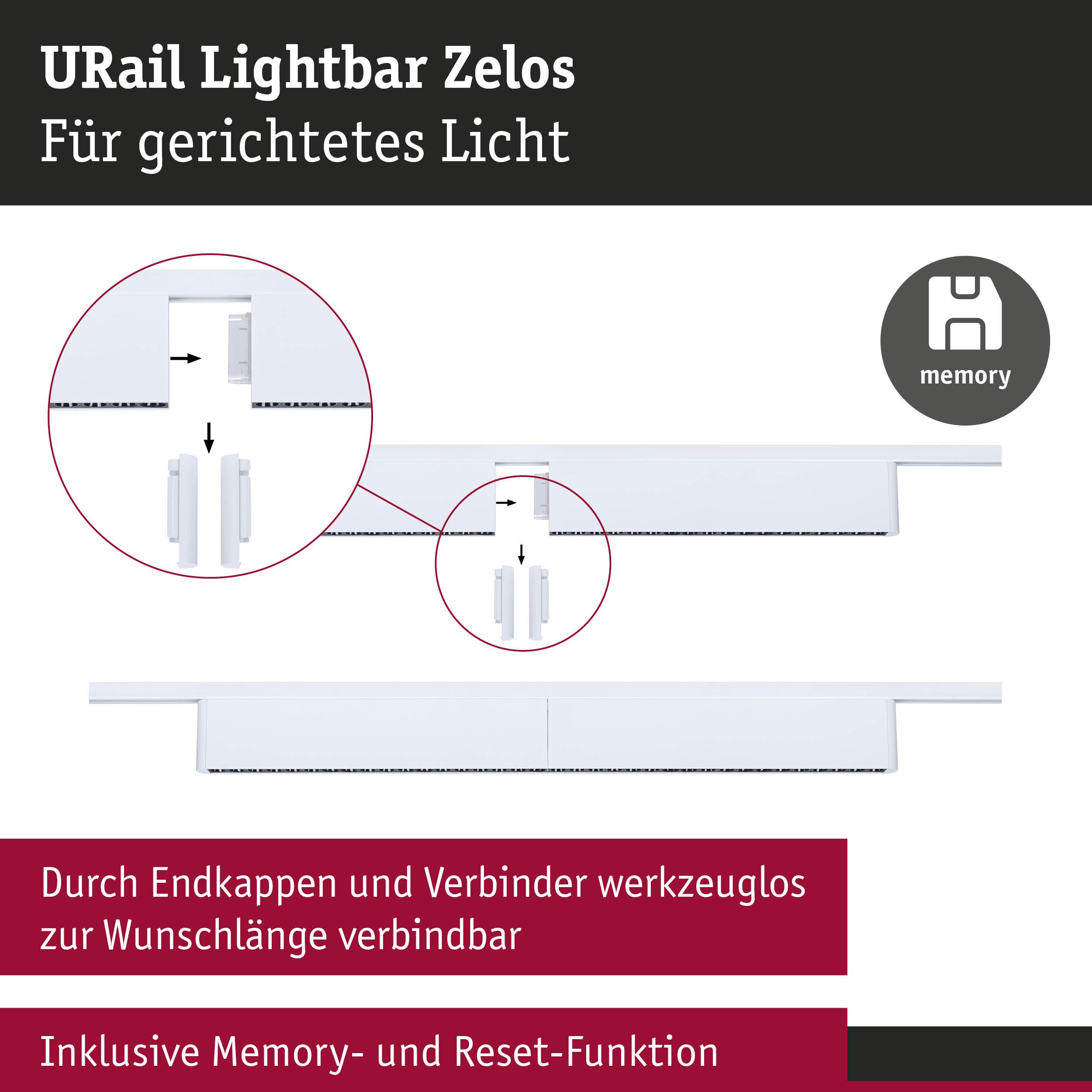 Die URail Lightbar Zelos in Signalweiß mit einer Farbtemperatur von 4000K schafft eine aktivierende, neutralweiße Lichtatmosphäre in Wohnräumen, Arbeitszimmern, Fluren oder anderen Räumen. Dabei sorgen die aneinandergereihten Linsen für ein gerichtetes Licht. Bestehend aus hochwertigem Aluminium und dem schlichten Design, fügt sie sich nahtlos in individuelle Wohnkonzepte ein. Die Länge von 32,2 cm ist nicht ideal? Kein Problem- Um die perfekte Länge für unterschiedliche Räume zu erreichen, können die Lightbars beliebig lang miteinander verkettet werden. Hierzu lassen sich die Endkappen ganz einfach abnehmen und mit den beiliegenden Verbindern bis zur gewünschten Länge erweitern. Auch das Verketten mit den Lightbars Ceris mit Diffusor ist bedenkenlos möglich. Ein weiteres Highlight ist die 3-Step Dimmfunktion, mit der die Helligkeit in drei Stufen über einen handelsüblichen Lichtschalter eingestellt werden kann. Für zusätzlichen Komfort sorgt die Memoryfunktion, mit der die zuletzt gewählte Lichteinstellung bis zum nächsten Einschalten gespeichert wird.