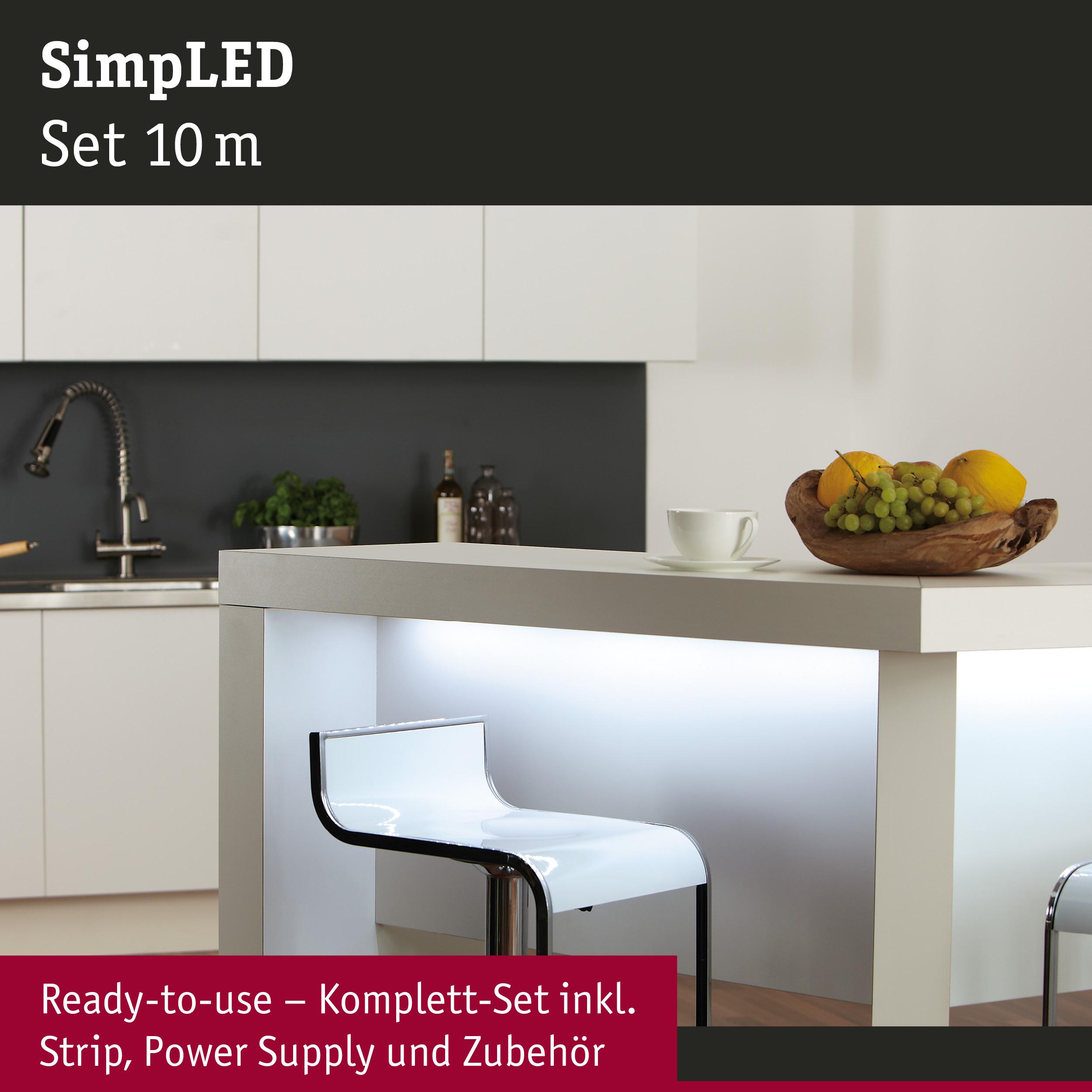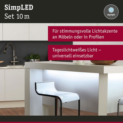 SimpLED LED Strip Tageslichtweiß Komplettset 10m beschichtet 22W 60 LEDs/m 6500K 24VA