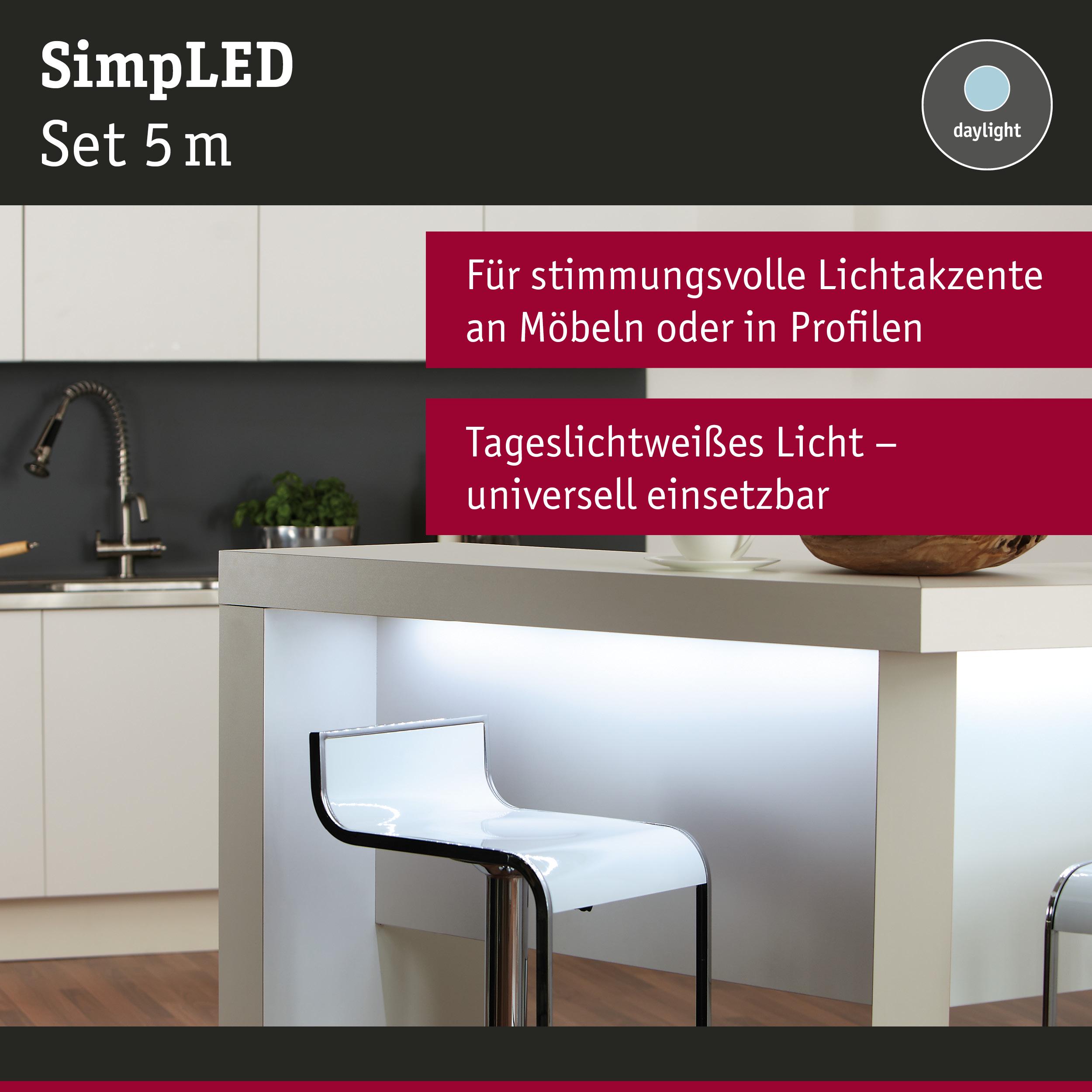 SimpLED LED Strip Tageslichtweiß Komplettset 5m beschichtet 11W 310lm/m 60 LEDs/m 6500K 18VA