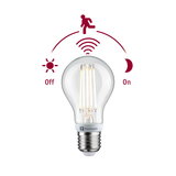 Filament 230V LED Birne E27 inkl. Dämmerungsgesteuerter Bewegungsmelder (HF) 806lm 7W 2700K E27