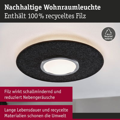Die LED Deckenleuchte Tulga aus Filz in Anthrazit mit 2000lm beeindruckt nicht nur mit ihrem modernen und schlichten Design, sondern schafft auch eine angenehme Atmosphäre und reduziert störende Hintergrundgeräusche. Zusätzlich besteht sie aus nachhaltigem, wiederverwertetem Material. Die Backlight Technik zaubert eine besondere Wohlfühlatmosphäre und verleiht der Deckenleuchte eine fast schwebend Leuchtoptik. Die warme Farbtemperatur erzeugt ein gemütliches Ambiente für entspannte Stunden zu Hause. Mit einem handelsüblichen Wandschalter lässt sich die Leuchte in 3 Stufen dimmen. Dank der Memoryfunktion merkt sich die Leuchte immer die bevorzugten Einstellungen.