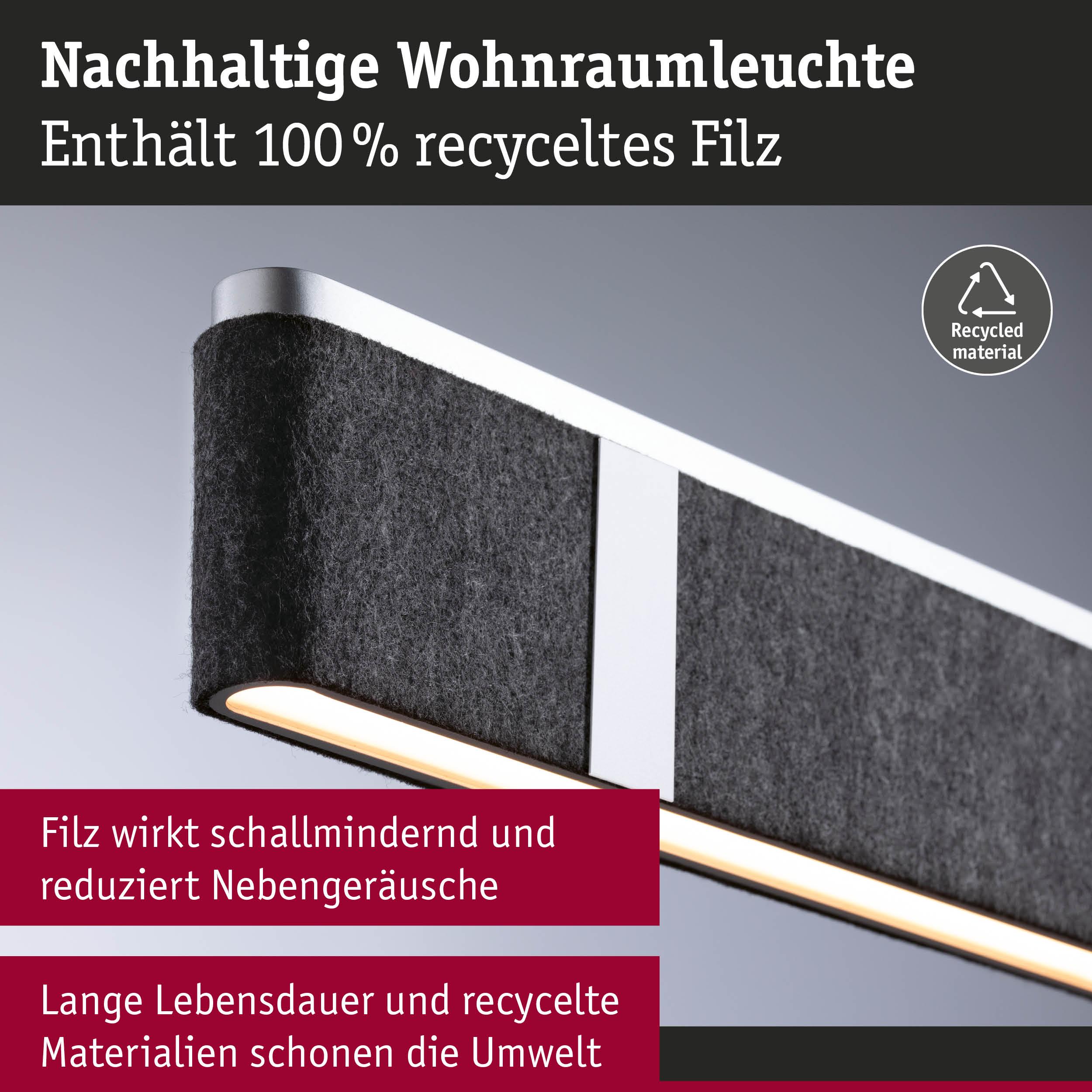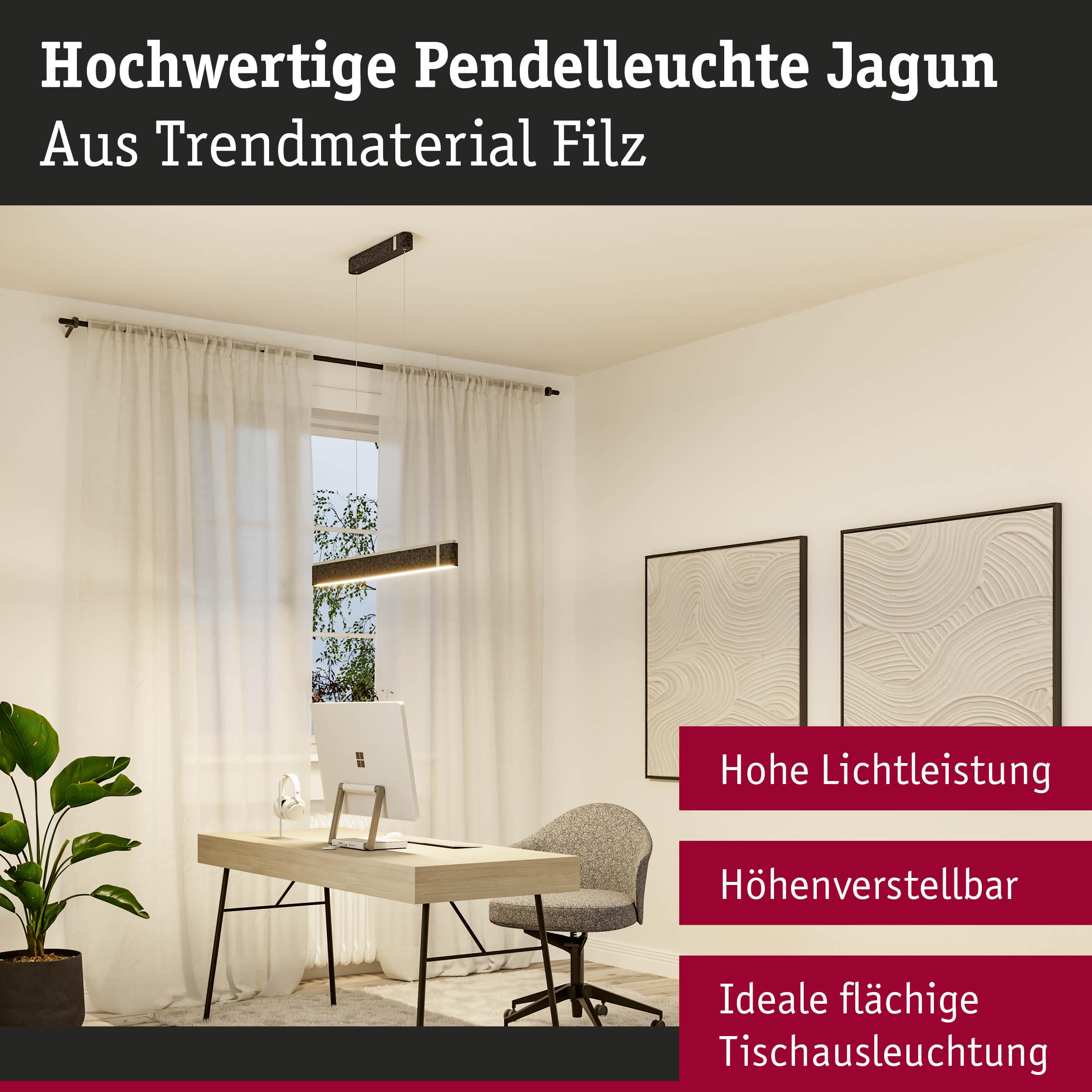 Die smarte, höhenverstellbare LED Pendelleuchte Jagun aus Filz in Anthrazit mit 1800lm beeindruckt nicht nur mit ihrem modernen und schlichten Design, sondern schafft auch eine angenehme Atmosphäre und reduziert störende Hintergrundgeräusche. Zusätzlich besteht sie aus nachhaltigem, wiederverwertetem Material. Dank der hohen Lichtleistung eignet sich die Pendelleuchte perfekt dafür, um Ess- oder Besprechungstische auszuleuchten. Über die Tunable White Funktion lässt sich die Lichtfarbe nach Bedarf einstellen: von tageslichtweißem Arbeitslicht bis hin zu warmweißer Entspannungsbeleuchtung. Die Leuchte ist Zigbee 3.0 kompatibel. Zigbee 3.0 ist ein Funkübertragungsprotokoll, das Geräte verschiedener Hersteller miteinander vernetzt.