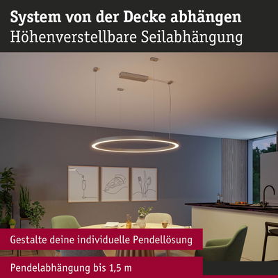 Das einzigartige Lichtkanalsystem Linion setzt neue Maßstäbe, wenn es um die individuelle Raumbeleuchtung geht. Mit dem ästhetischen und klaren Design sorgt das System für eine ansprechende und fließende Beleuchtung, die maximale Flexibilität mit hoher Funktionalität vereint. Egal, ob das Lichtkanalsystem als Decken- oder Pendelmontage besser im Raum zur Geltung kommt – Linion lässt großen Gestaltungsspielraum. Eine Pendellösung lässt sich mit der 1,50 Meter Linion Seilabhängung realisieren. Die Seilabhängung kann am Deckenbaldachin eingeschoben oder gekürzt werden. Dies sorgt für eine beeindruckende Lichtinszenierung und schafft eine einladende Atmosphäre in verschiedenen Räumen, sei es im Essbereich, im Wohnzimmer oder im Arbeitszimmer.