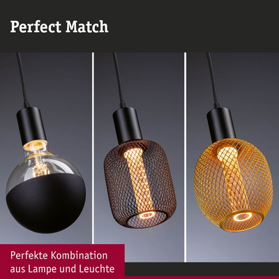 Der Mix & Match Look ist absolut im Trend und ermöglicht das Zuhause mit einem besonderen Blickfang zu verschönern. Die moderne Pendelleuchte Ravi in Schwarz matt ist ein perfekter Beweis dafür. Mit ihrem minimalistischen, modernen Design und der attraktiven Farbkombination wird sie zu einem echten Highlight. Dank des IP44-Schutzes kann die Pendelleuchte Ravi selbst im Bad verwendet werden. Im preisgünstigen Set ist das Leuchtmittel der Serie Metallic Glow enthalten, das besonders harmonisch in Kombination mit der Pendelleuchte aussieht. Das LED Leuchtmittel Metallic Glow verbindet dezentes, goldenes Licht mit einem dekorativen, messingfarbenen Metallkorb. Für eine perfekt gerichtetes Licht nach unten sorgt das leuchtende Element am Ende des Innenkolbens. Modernes Design trifft hier auf effiziente LED-Technik und schafft eine gemütliche und goldene Akzentbeleuchtung.