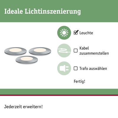Plug & Shine LED Bodeneinbauleuchte Floor Mini Erweiterungsset IP67 3000K 3x2,5W Silber