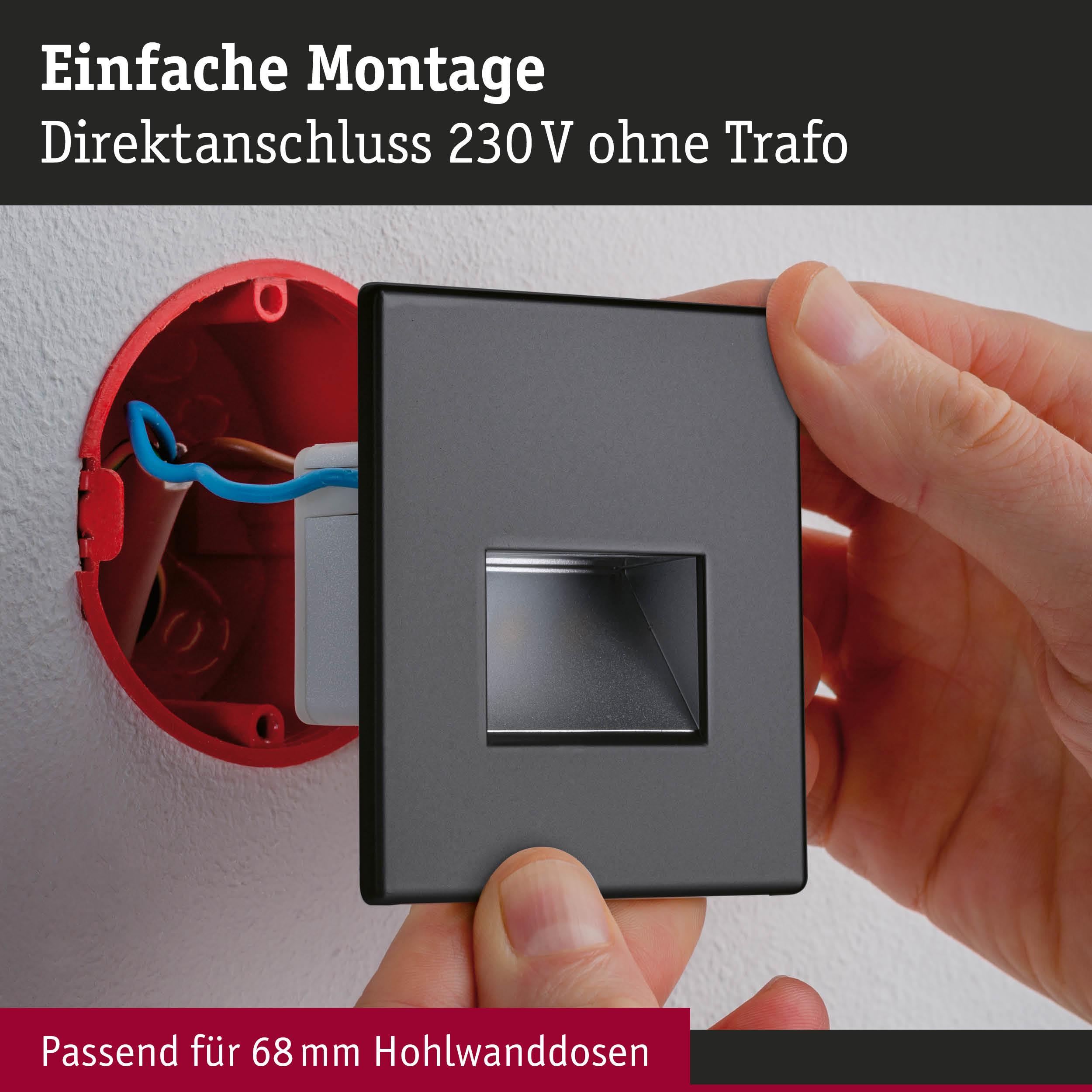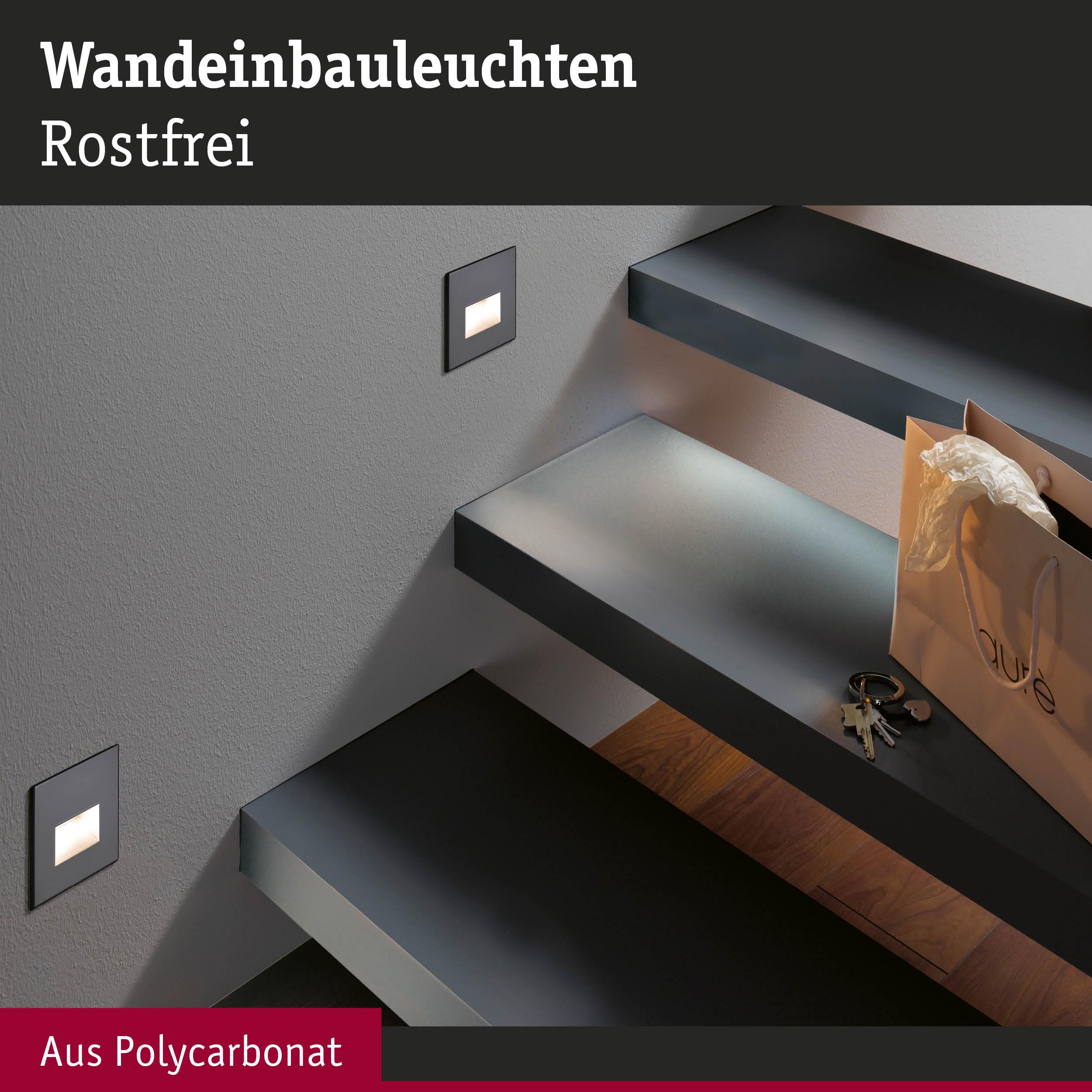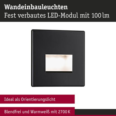 Set LED Wandeinbauleuchte Edge 3er-Set eckig 80x80mm 3x1,2W 3x50lm 230V 2700K Schwarz matt