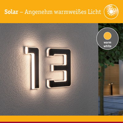 Set Solar LED Hausnummernleuchte inkl. wechselbarer Akku Nummer 13 3000K 2x6lm 2x0,2W Schwarz