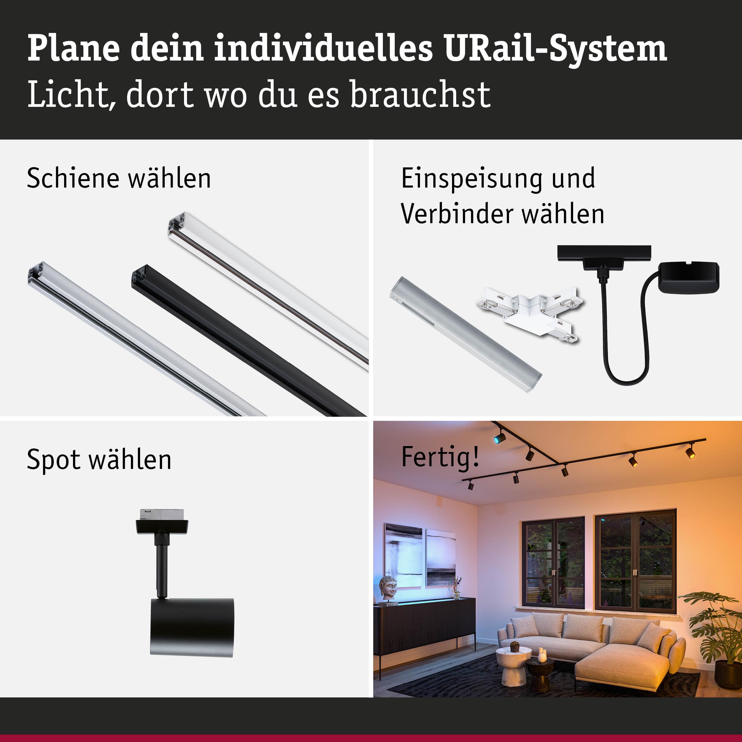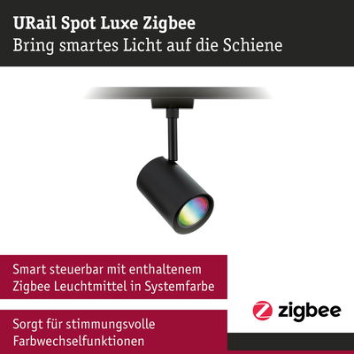 URail Schienenspot Smart Home Zigbee 3.0 Luxe GU10 350lm 4,8W RGBW+ dimmbar 230V Schwarz matt