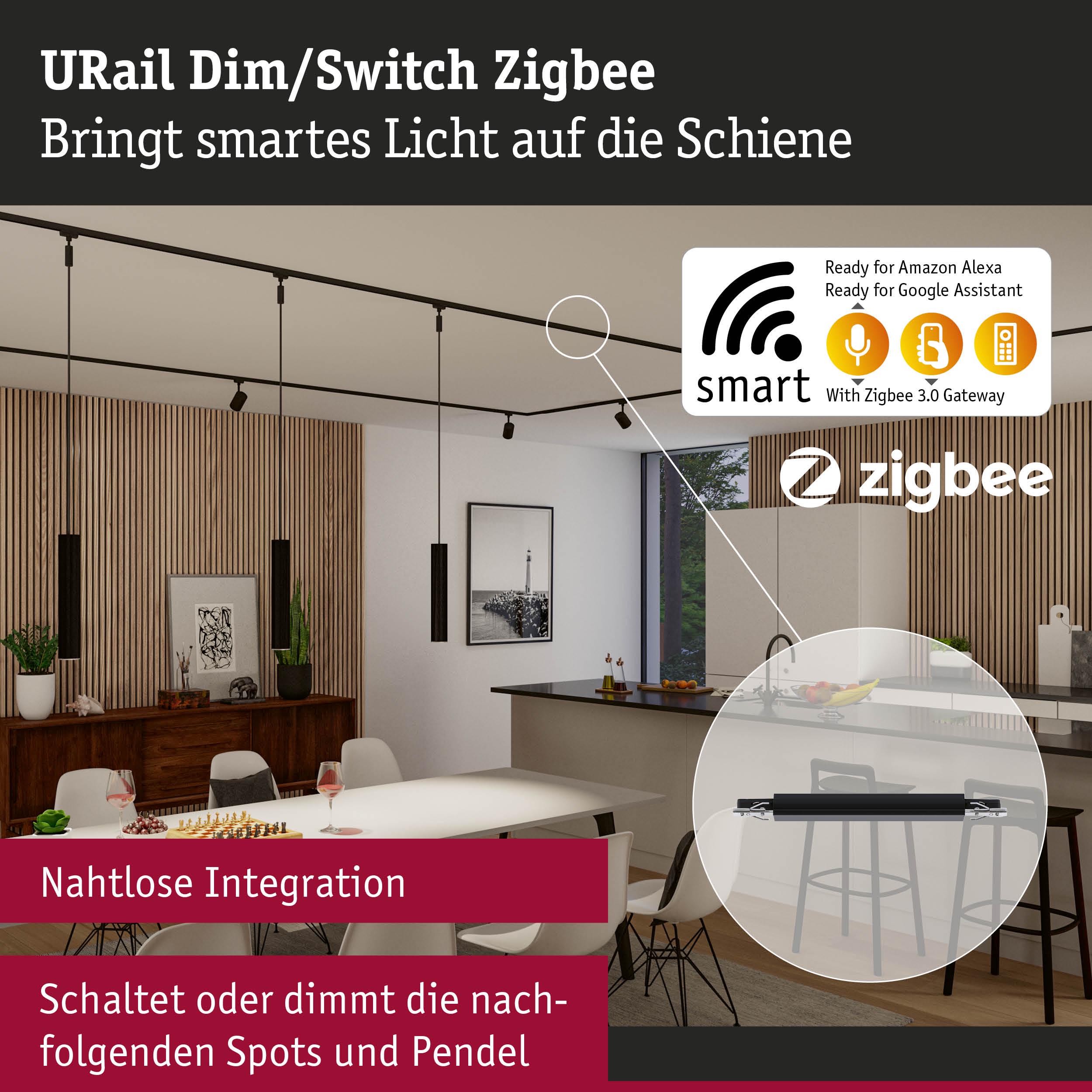 URail Schienenadapter Zigbee 3.0 Dimm/Switch 240x21mm max. 50W Schwarz matt