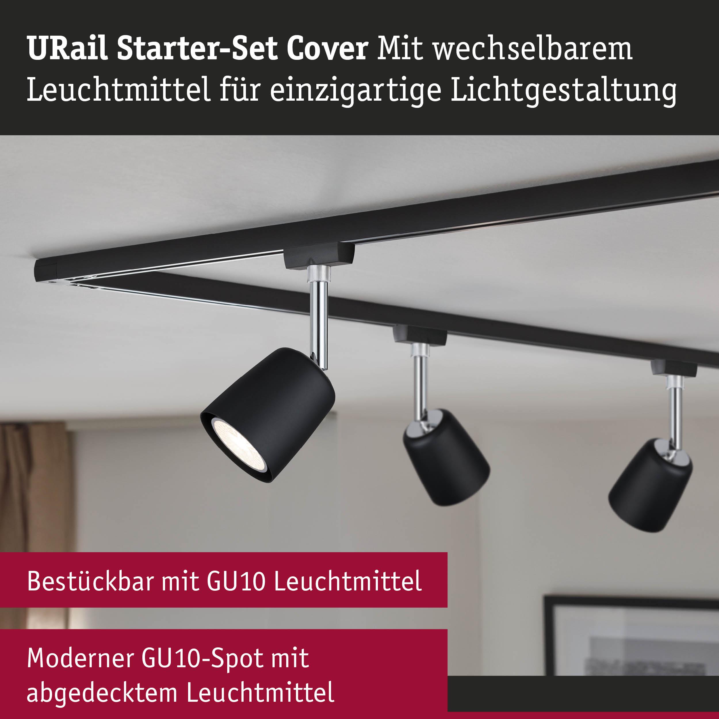 URail Schienenspot Cover Starterset GU10 max. 10W dimmbar 230V Schwarz matt/Chrom