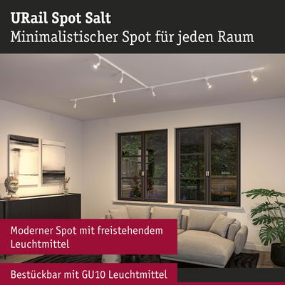 URail Schienenspot Salt Einzelspot GU10 max. 10W dimmbar 230V Signalweiß
