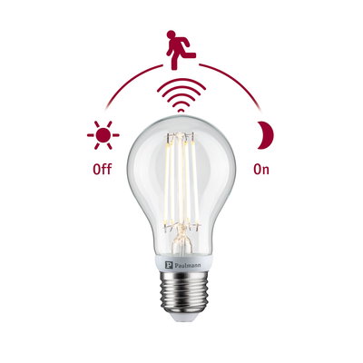 Filament 230V LED Birne E27 inkl. Dämmerungsgesteuerter Bewegungsmelder (HF) 806lm 7W 2700K E27