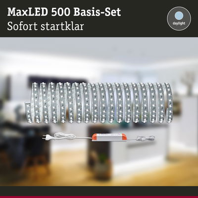 MaxLED 500 LED Strip Basisset 10m Tageslichtweiß 50W 550lm/m 6500K 75VA