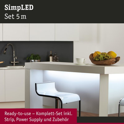 SimpLED LED Strip Tageslichtweiß Komplettset 5m beschichtet 11W 310lm/m 60 LEDs/m 6500K 18VA