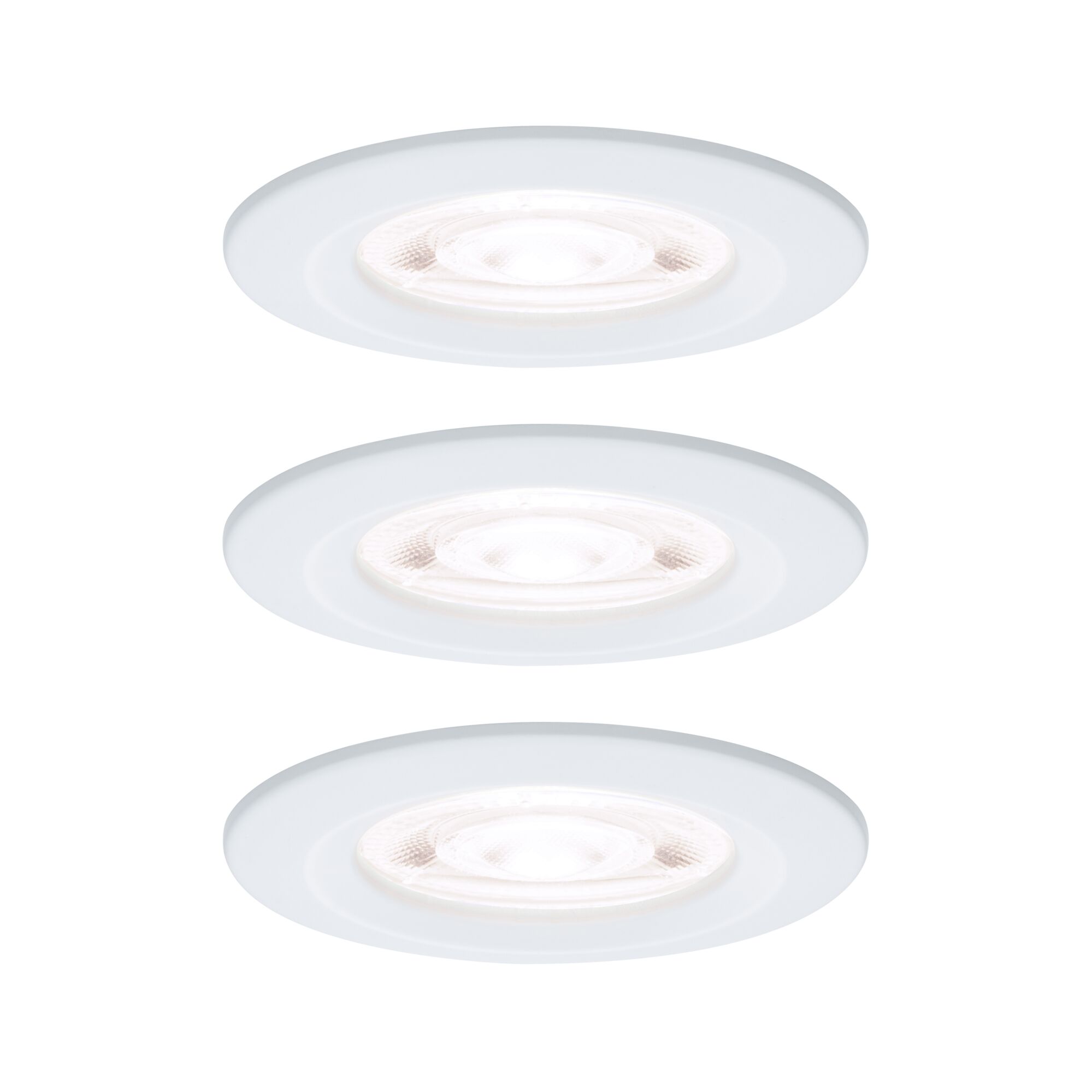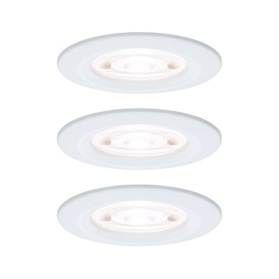 Die Weiß matten LED Einbauleuchten Nova im praktischen 3er Set mit 3x4,9 W überzeugen neben ihren technischen Funktionen, insbesondere durch ihren flachen GU10 Flat Reflektor. Mit einer Einbautiefe von nur 55 mm eignen sie sich daher optimal zur Installation in flachen Zwischendecken. Dank des hohen IP44-Schutzes sind die Einbauleuchten vor Spritzwasser geschützt und können bedenkenlos auch im Badezimmer oder Außenbereich montiert werden. Die Farbtemperatur von 4000 K sorgt für ein funktionales neutralweißes Licht. Der Standard-Bohrdurchmesser von 68 mm ermöglicht ein schnelles Einsetzen und flexibles Nachrüsten der Leuchte. Robuste Metallringe sorgen für ein hochwertiges Erscheinungsbild und garantieren eine langlebige Nutzung.