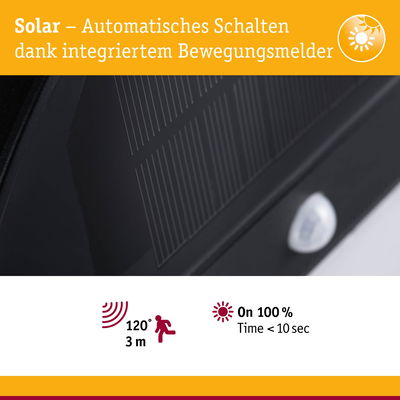 | Sensoren | Dämmerungsgesteuerter Bewegungsmelder (IR) |