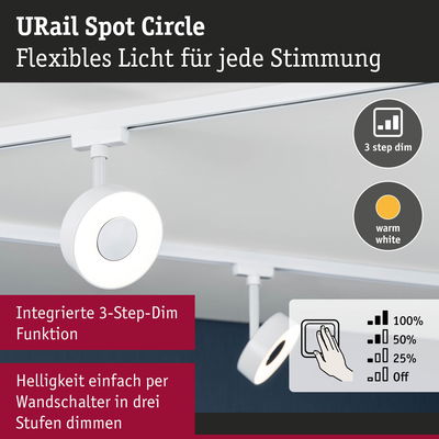 URail Schienenspot 3-Step-Dim Circle 280lm 5W 3000K dimmbar 230V Signalweiß