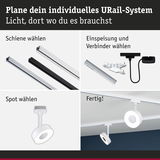 Die warmweiße URail Schienenleuchte Circle in Signalweiß ist kompatibel mit den meisten URail Artikeln. Mit der integrierten 3-step-dim Funktion, kann die Leuchte durch mehrmaliges Betätigen eines handelsüblichen Lichtschalters in drei Stufen gedimmt werden. Zusammen mit den entsprechenden URail Komponenten entsteht ein ganz individuelles Lichtsystem bis zu einer Gesamtleistung von max. 1000W.