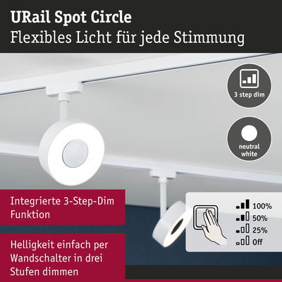 URail Schienenspot 3-Step-Dim Circle 220lm 5W 4000K dimmbar 230V Signalweiß